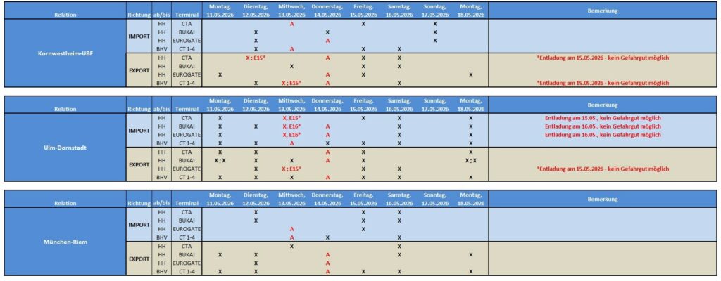 Abfertigung an den Terminals zu. Auch das Vorziehen der Ent- und Beladung kann vorkommen.