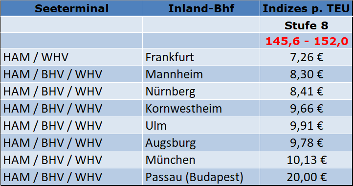 Der Infrastruktur Zuschlag wird ab dem 01. Januar 2026 mit EUR 32,00 per TEU und Transportrichtung in Rechnung gestellt.